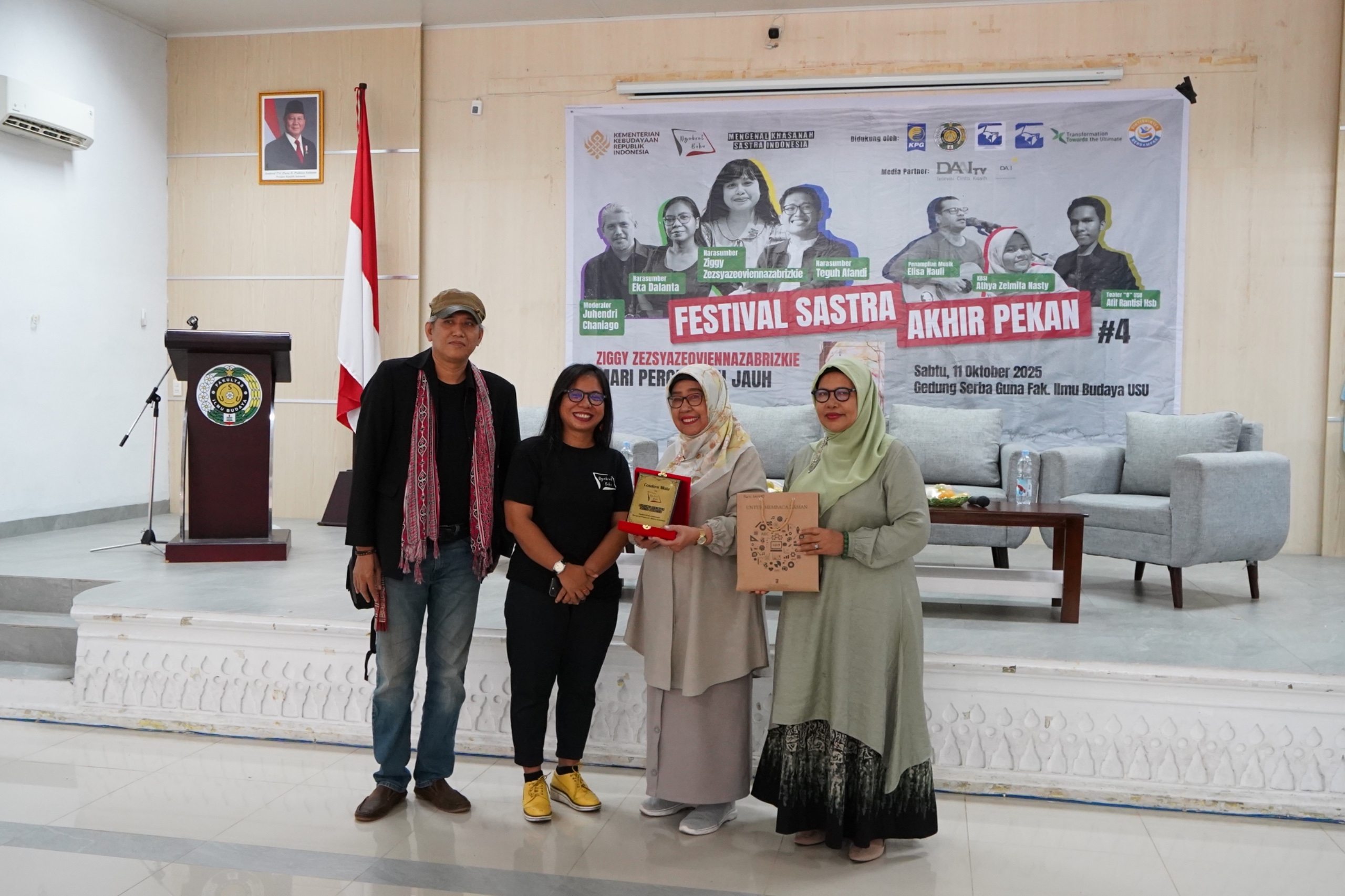 Analisadaily.com, Medan - Komitmen Universitas Sumatera Utara (USU) di bawah kepemimpinan Rektor Prof. Dr. Muryanto Amin, S.Sos., M.Si., terhadap penguatan bidang sastra dan literasi budaya kembali terlihat melalui kolaborasi antara Program Studi Sastra Indonesia Fakultas Ilmu Budaya USU dan Komunitas Literasi Ngobrol Buku dalam kegiatan bertajuk Festival Sastra Akhir Pekan, Sabtu (11/10/2025), di Gedung Prof. T. Amin Ridwan (Ruang Serbaguna) FIB USU.