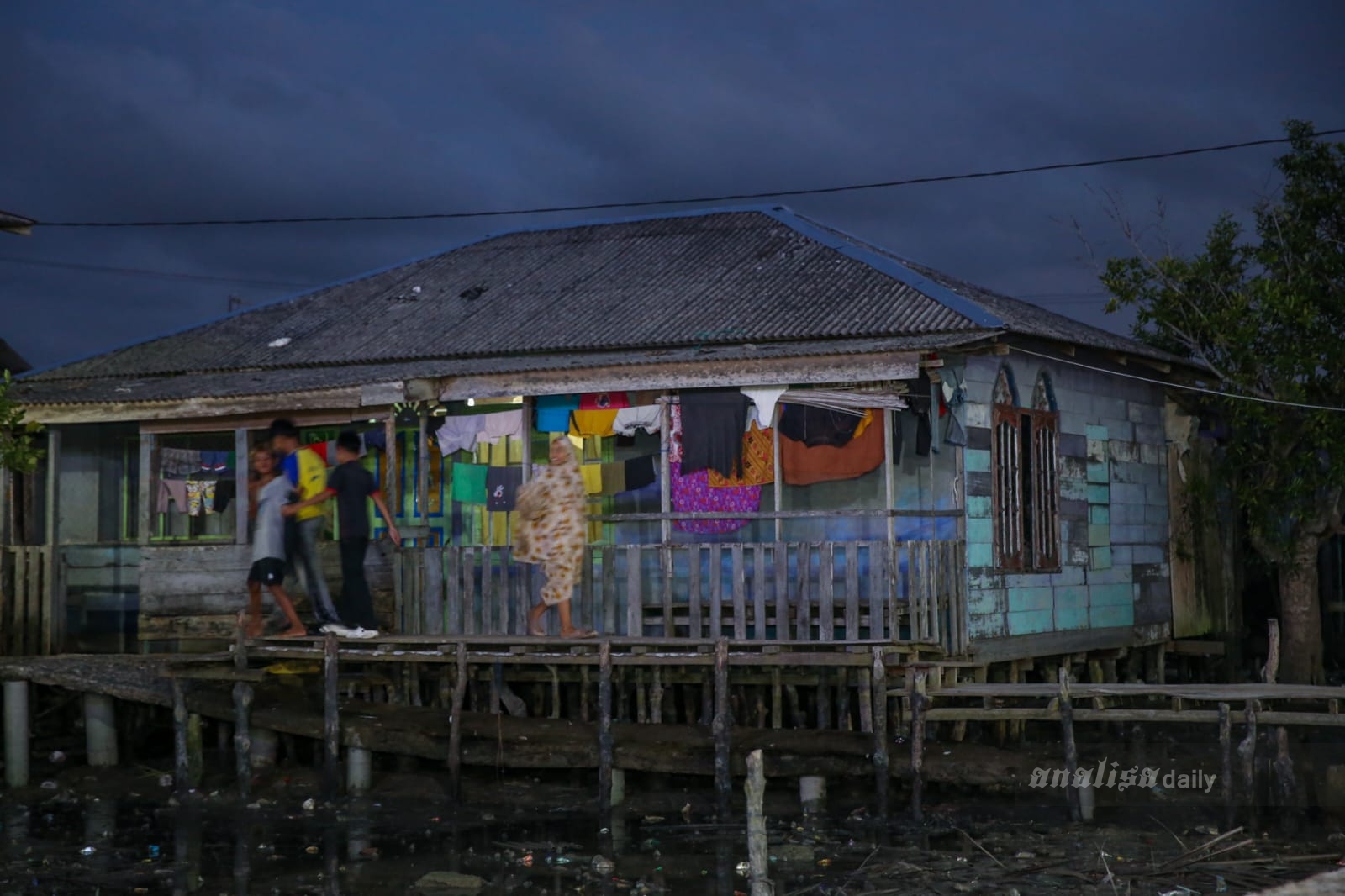 “Kalau mati listrik, kampung ini gelap total. Jalannya papan, bawahnya laut. Di sini banyak lansia, kita takutnya jatuh ke laut,” katanya.