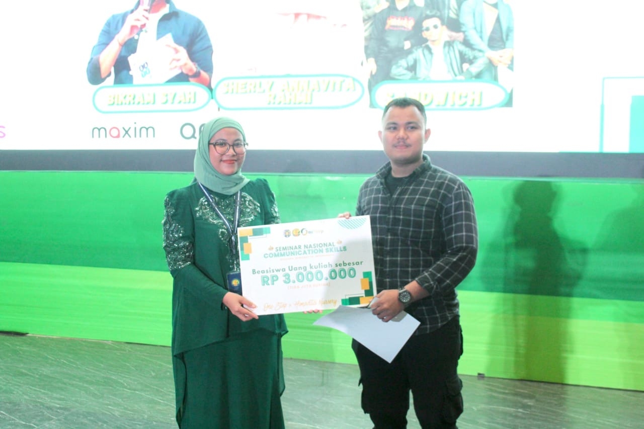 Sebagai bagian dari rangkaian kegiatan, Pembina UKM turut mewakili panitia menyerahkan beasiswa uang kuliah kepada pemenang doorprize dari Institut Teknologi Sawit Indonesia (ITSI) sebagai bentuk apresiasi dan dorongan agar mahasiswa terus berkembang dan berprestasi.