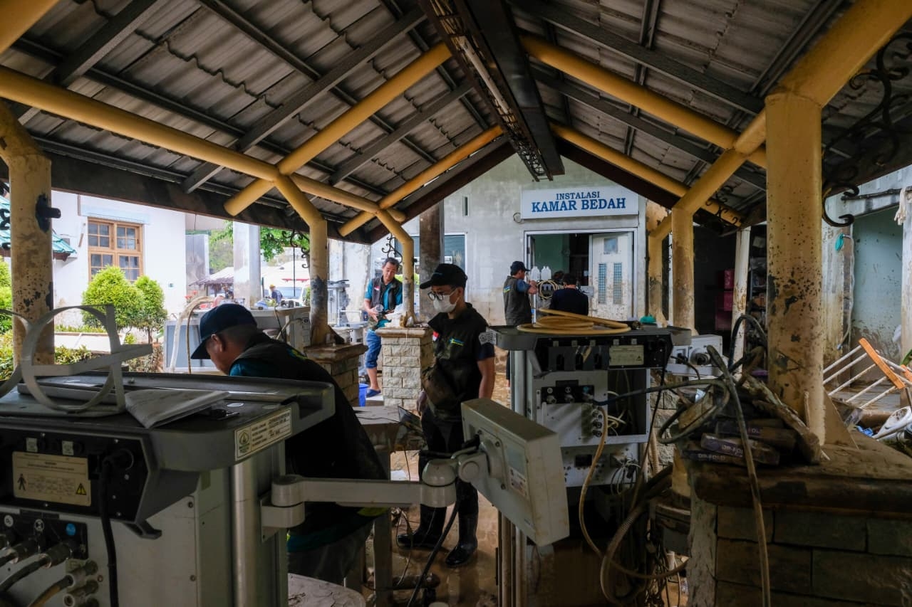 Pada hari pertama layanan dibuka kembali, belum ada pasien yang datang. Personel TNI masih tampak hilir mudik membawa sekop dan selang air. Namun, dalam dua hari terakhir, sejumlah pegawai yang kondisinya mulai stabil sudah kembali bekerja. Bantuan tenaga dari relawan dan berbagai pihak lain terus mengalir.