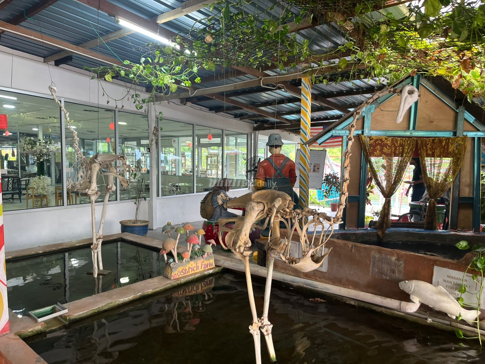 Menariknya, edukasi di sini tidak hanya berhenti pada interaksi dengan hewan hidup. Di beberapa sudut, terdapat kerangka burung unta yang dipajang sebagai media pembelajaran, serta telur-telur burung unta yang diolah menjadi kerajinan, seperti lampu hias. Elemen ini memperkaya pengalaman, menggabungkan pengetahuan ilmiah dengan sentuhan kreativitas.